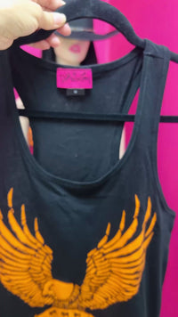 This slashed biker tank brings the attitude with daring cutouts across the chest, waist, and back for that perfect peek-a-boo rebel look. Designed with original Freedom Eagle artwork, this tank is the ultimate mix of biker grit and punk-rock glam.